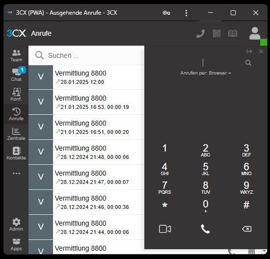 - Browser-Benachrichtigungen bei Anrufen: Eingehende Anrufe werden selbst bei geschlossenem Browser durch die automatische Öffnung des Fensters signalisiert.